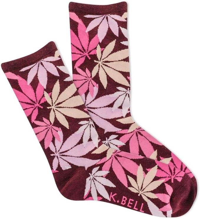 K. Bell Women’s Crew Socks, Scattered Cannabis Leaf Pattern