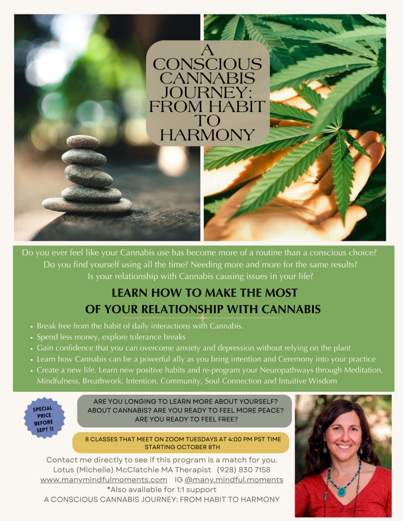 McClatchie’s upcoming program, “A Conscious Cannabis Journey: From Habit to Harmony,” starts October 8th. This eight-week online program offers individuals a supportive space to explore their relationship with cannabis and create a path towards balance.