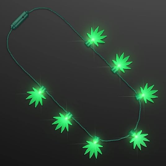 5. Flashing Light-Up Cannabis Leaf Necklace: