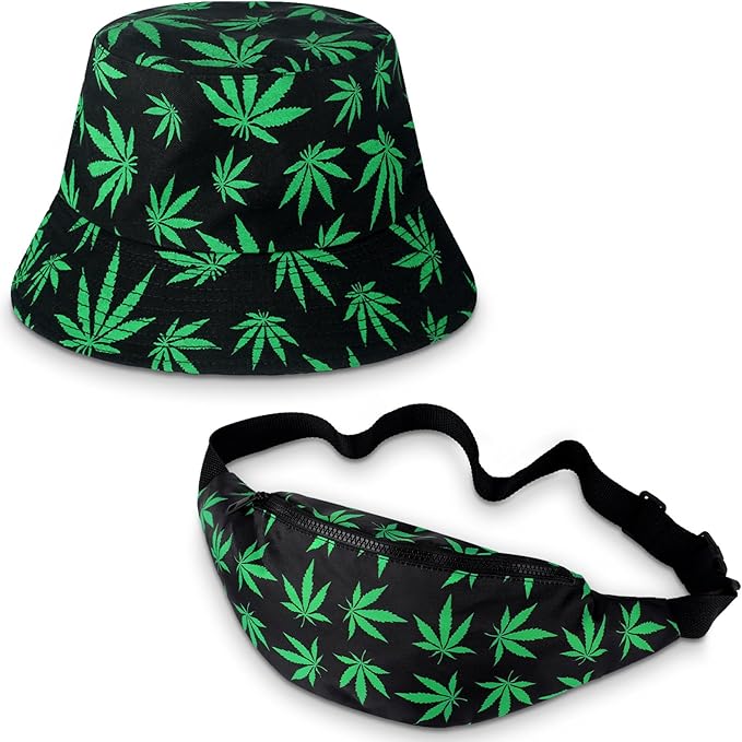 3. Reversible Bucket Hat and Fanny Pack with Cannabis Print: